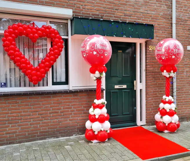 Een ballonnenhart is een mooie decoratie voor een romantische aanzoek, valentijn, huwelijk, moederdag of een andere gelegenheid. Het hart op frame incl. lint kan worden opgehangen aan bijvoorbeeld een gevel, muur of raam.